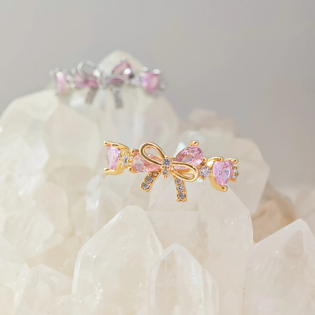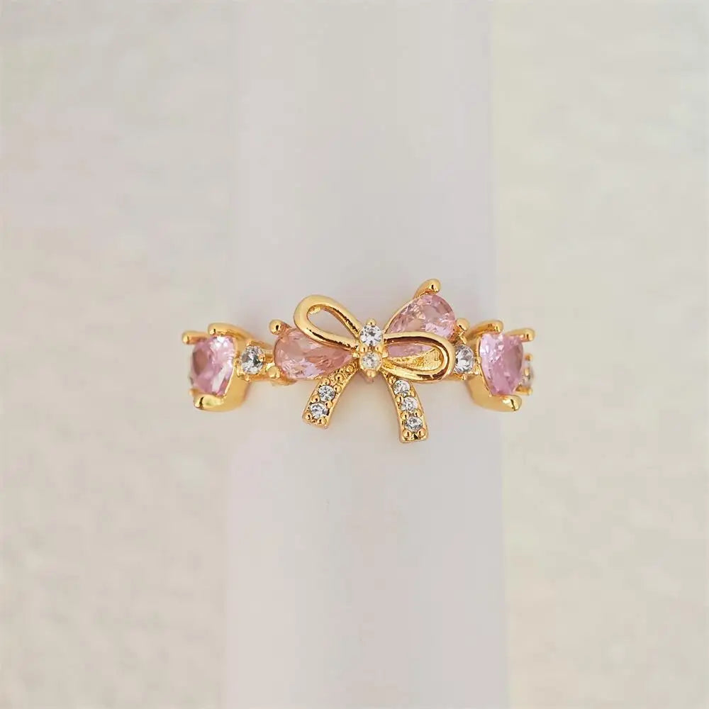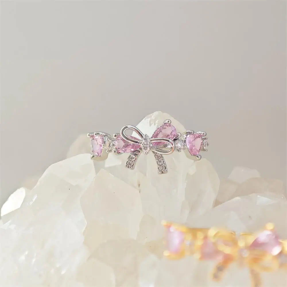 Un petit nœud qui dit tout. 🎀 La bague Zircon enchante par son design délicat et ses pierres roses scintillantes....
